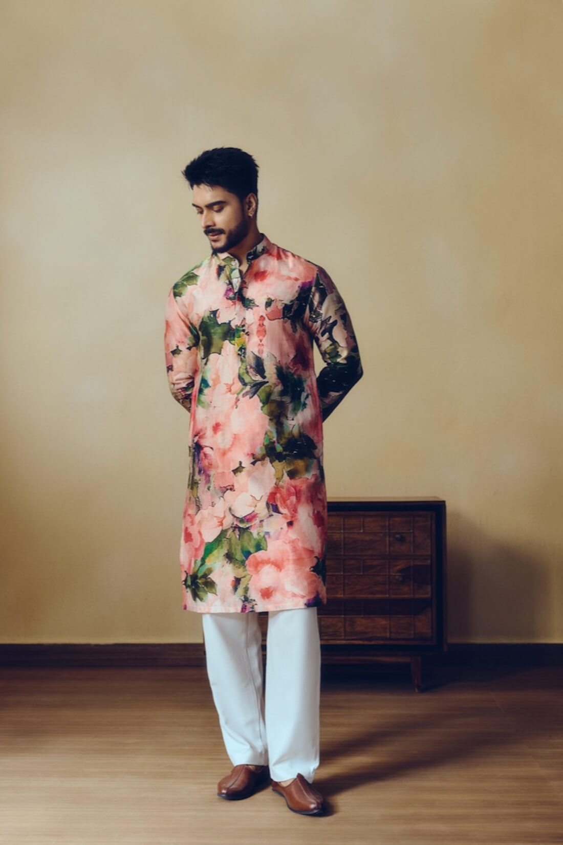 3. Abstract Print Ruby Kurta in Blossom Pink – Studio 113