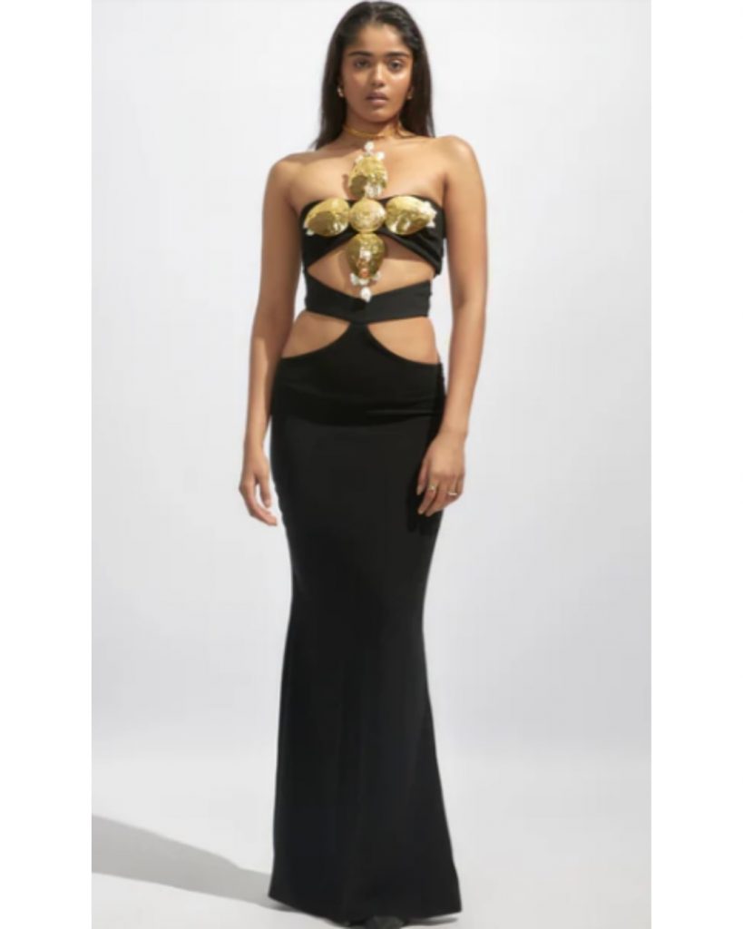 With strategically placed cutouts, this maxi dress combines class. It’s designed to highlight your best features in a tasteful manner. Price: INR 65,000