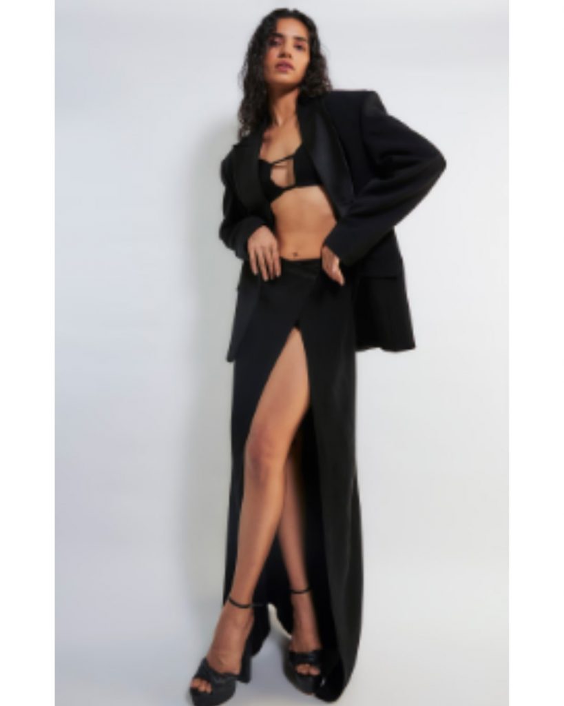 Turn heads with the high-slit maxi skirt, combining sophistication with a hint of playfulness. Pair it with a fitted top for a stunning ensemble. Price: INR 62,000
