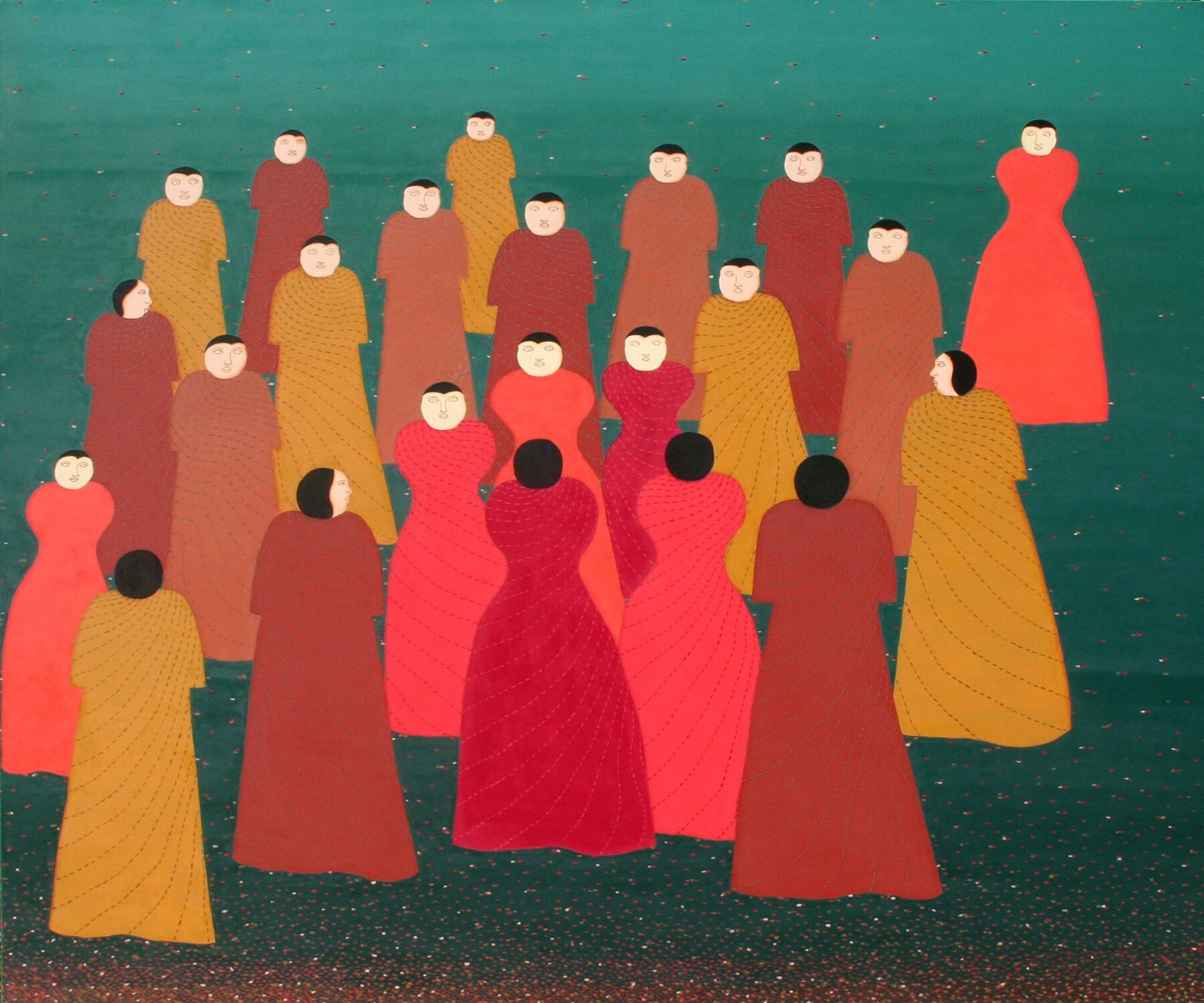 Curator Jyoti A Kathpalia noted, “Gender inequality and oppression are often either glossed over or treated as ordinary, having become a part of day-to-day reality. Behind the apparent perfection of the families, community and society lies silence, hysteria, pained acquiescence or simply the numbing of spirits of countless women. The marginalisation of women and their voices raise larger questions of the search of an alternate, more equal world and the re-visioning of the feminine, an idea that lies at the very heart of this exhibition.”
