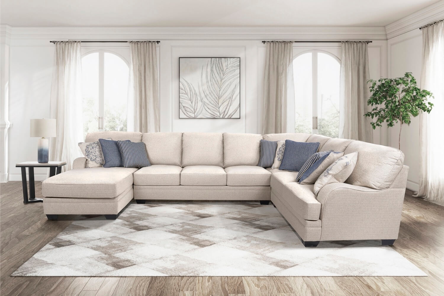 Description: With generous proportions and relaxed appeal, the Katisha 5-Piece Sectional with Chaise brings laid-back comfort and versatile style to contemporary living rooms. Its spacious layout includes a plush chaise that invites you to stretch out after a long day, while deep, supportive seating makes it perfect for family gatherings or quiet evenings in. The modular design adapts beautifully to different room layouts, creating a cozy, welcoming centrepiece that balances comfort with effortless everyday elegance.