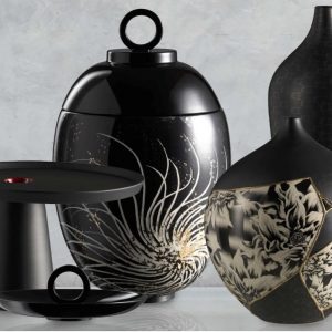Collection Description : Inspired by the Japanese art of Kintsugi, this hand-thrown clay vase transforms imperfection into beauty—perfectly echoing the spirit of Halloween. Its black and white glazed finishes, traced with veins of gold, evoke mystery and elegance. The glimmering rilievo catches the light like moonlit magic, making it a striking accent for moody, candlelit settings that celebrate both the haunting and the beautiful.