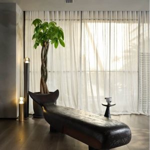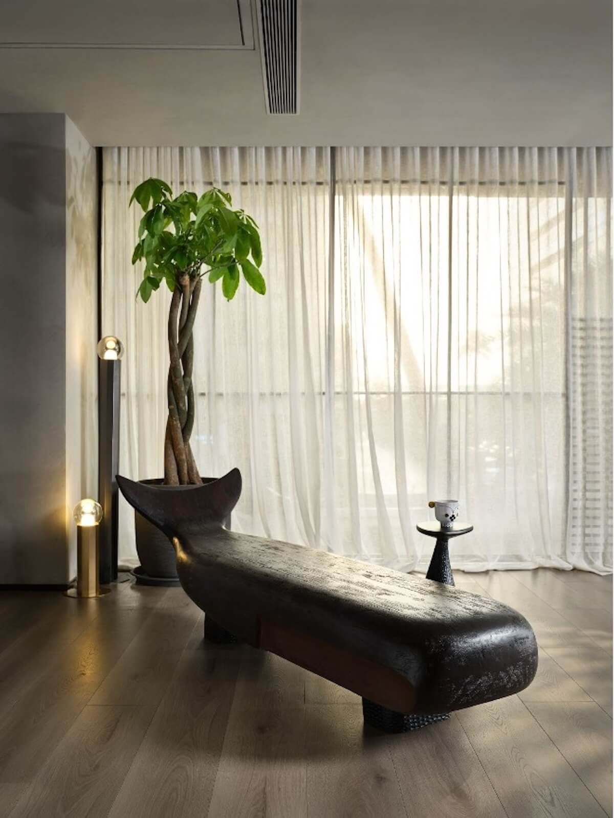 Product Description – Hand-sculpted from solid teakwood, this statement bench brings a touch of mystery to your Halloween setting. Its flowing, whale-like form adds sculptural drama, while the exposed wood grain and natural variations create an earthy, organic warmth against the season’s moody palette. The gently curving tail fin evokes movement and depth — perfect for grounding a space that balances eerie elegance with natural charm.\