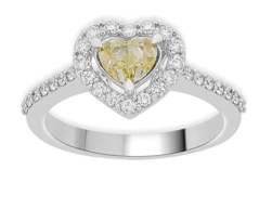 At the heart of this striking design is a vibrant yellow diamond, beautifully shaped into a heart and framed by a sparkling halo of natural diamonds, set on a finely pave-crafted band. Luminous and full of warmth, the ring captures the spirit of romance and celebration, making it an ideal choice for a meaningful proposal, a milestone anniversary or a memorable Valentine’s Day gift. Each facet reflects light with exceptional brilliance, while the halo and pave accents enhance its radiance, creating a piece that mirrors the depth and permanence of true emotion. Crafted for those who wish to express love with grace and confidence, this ring turns a special occasion into a moment to be cherished forever.
