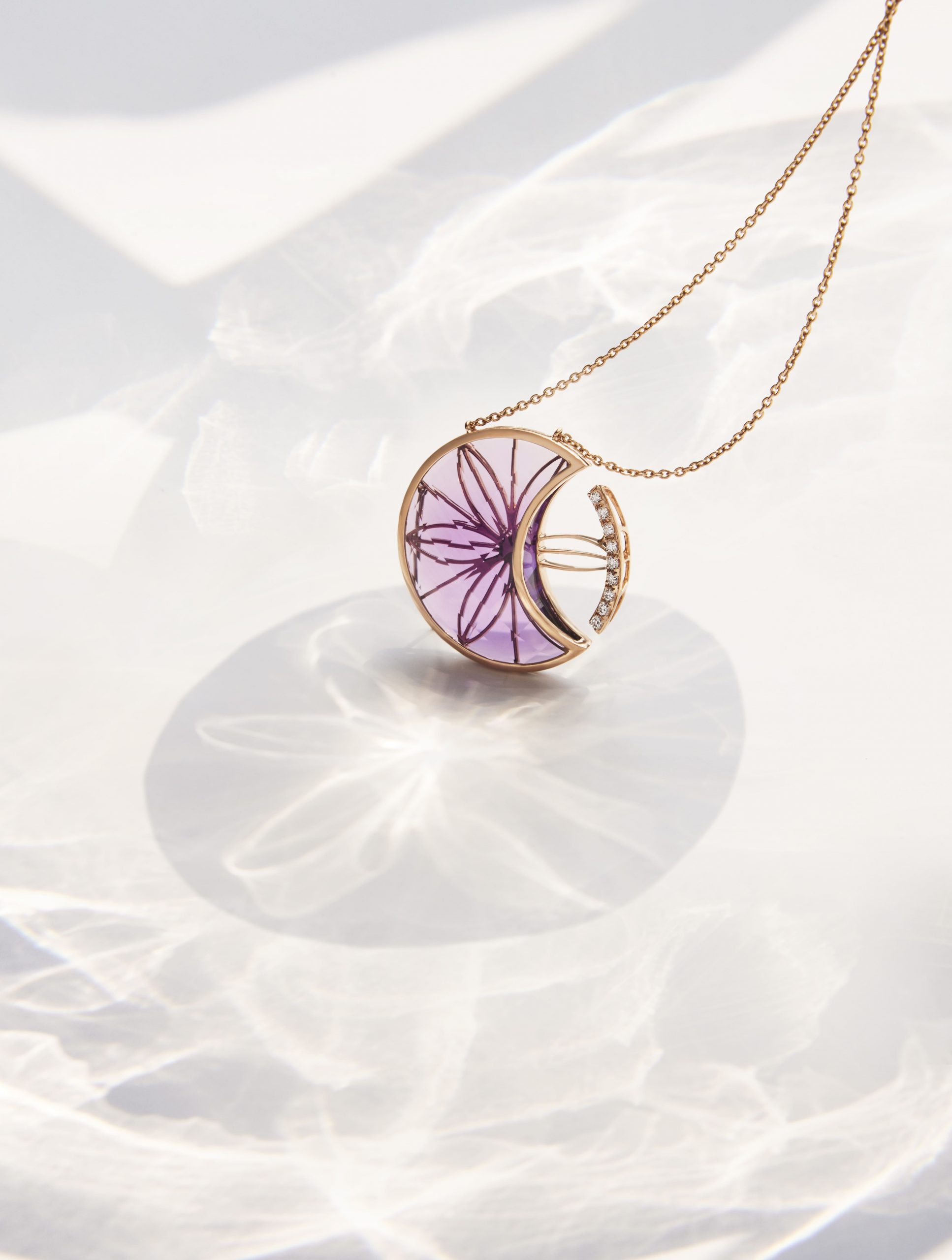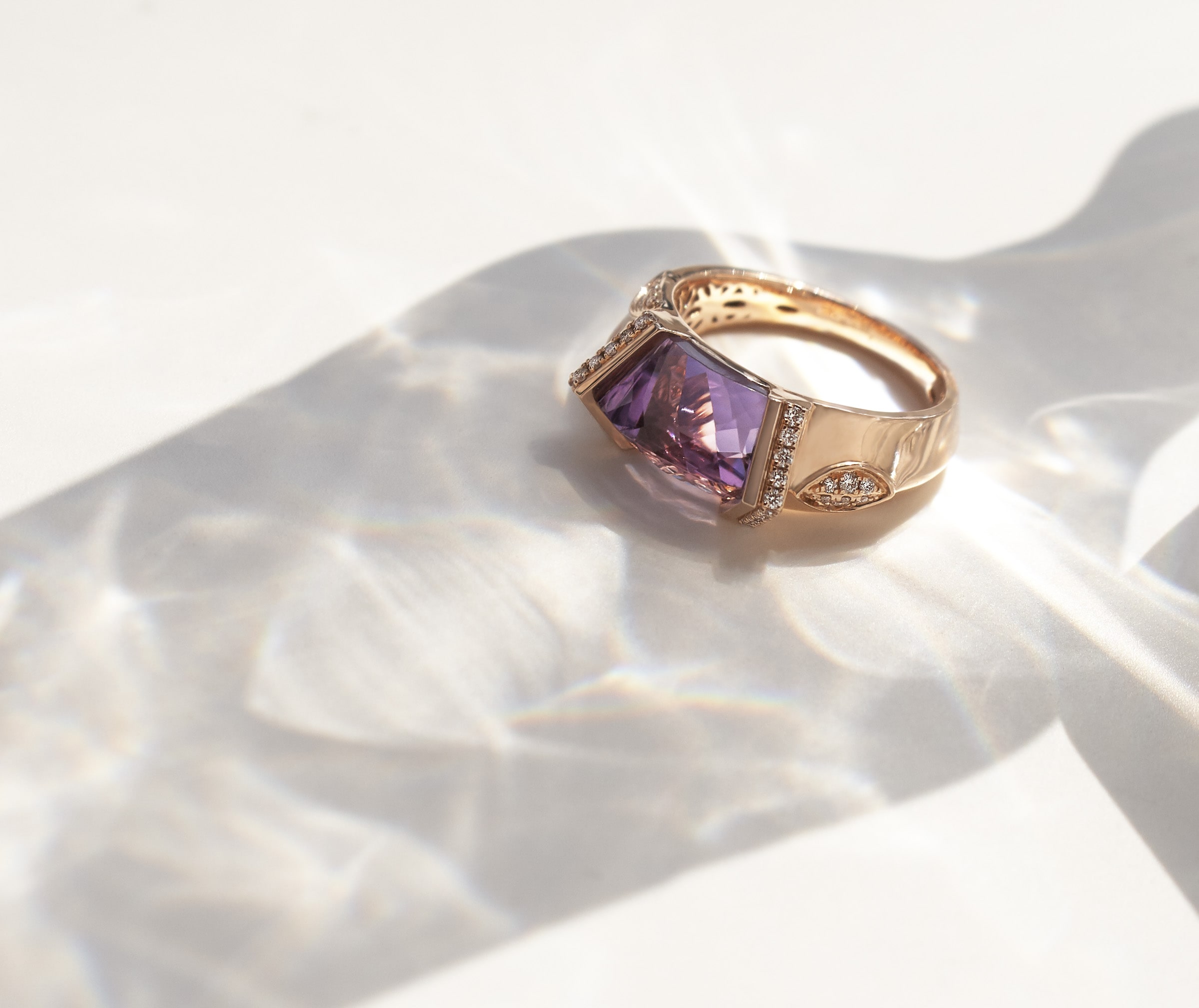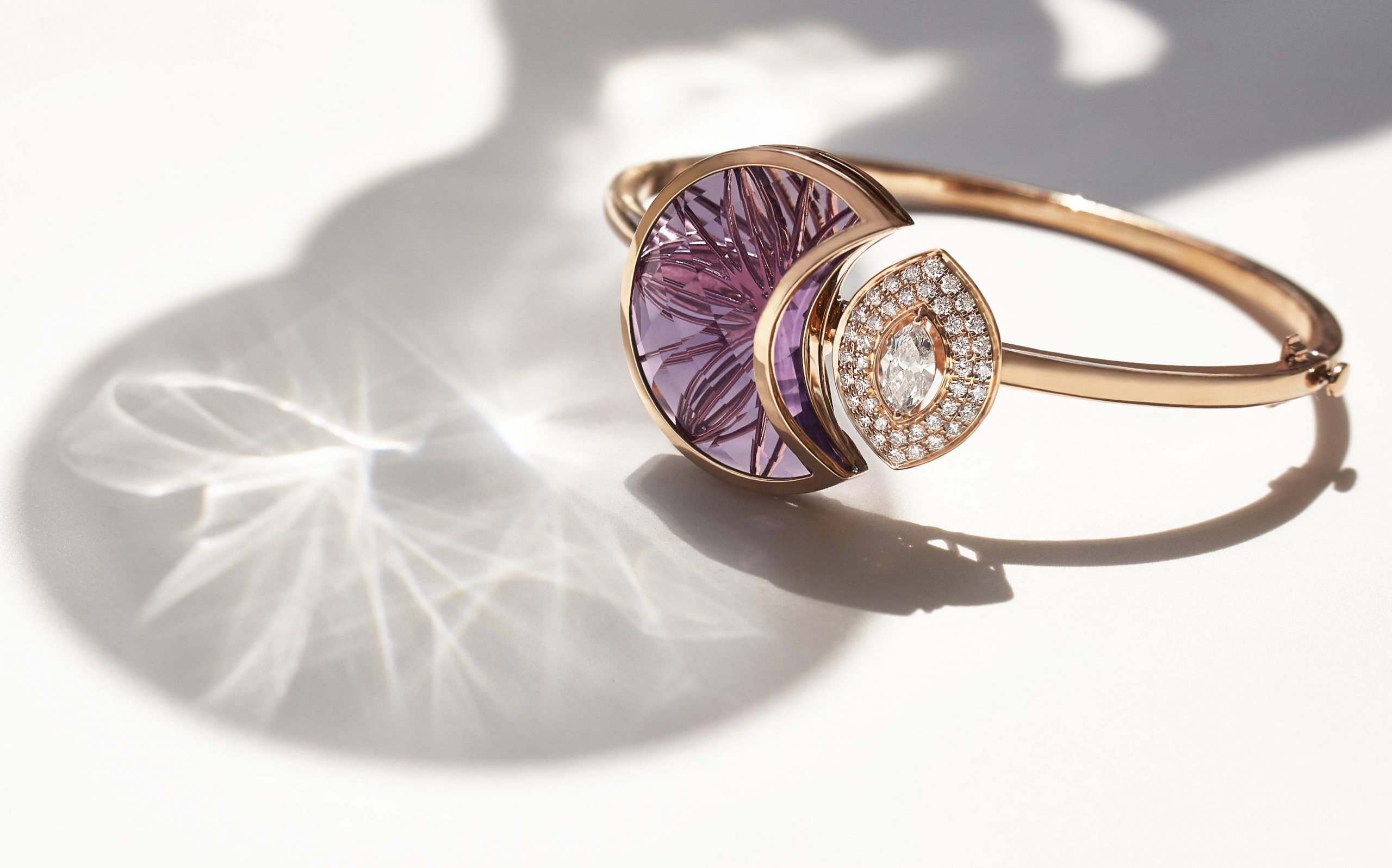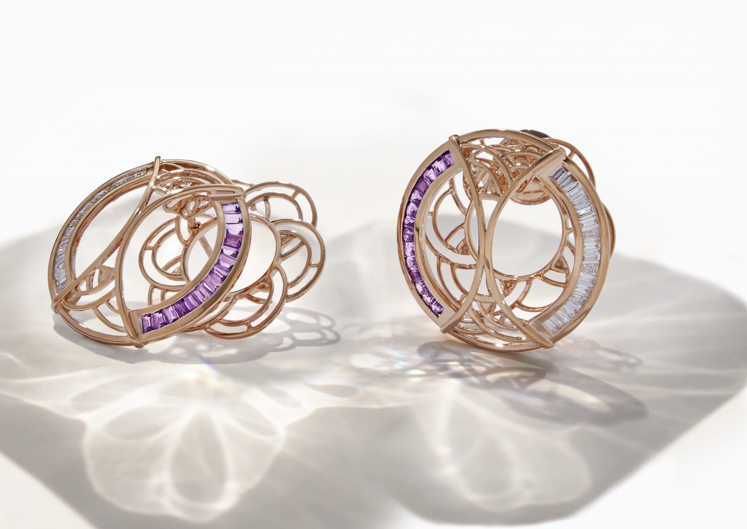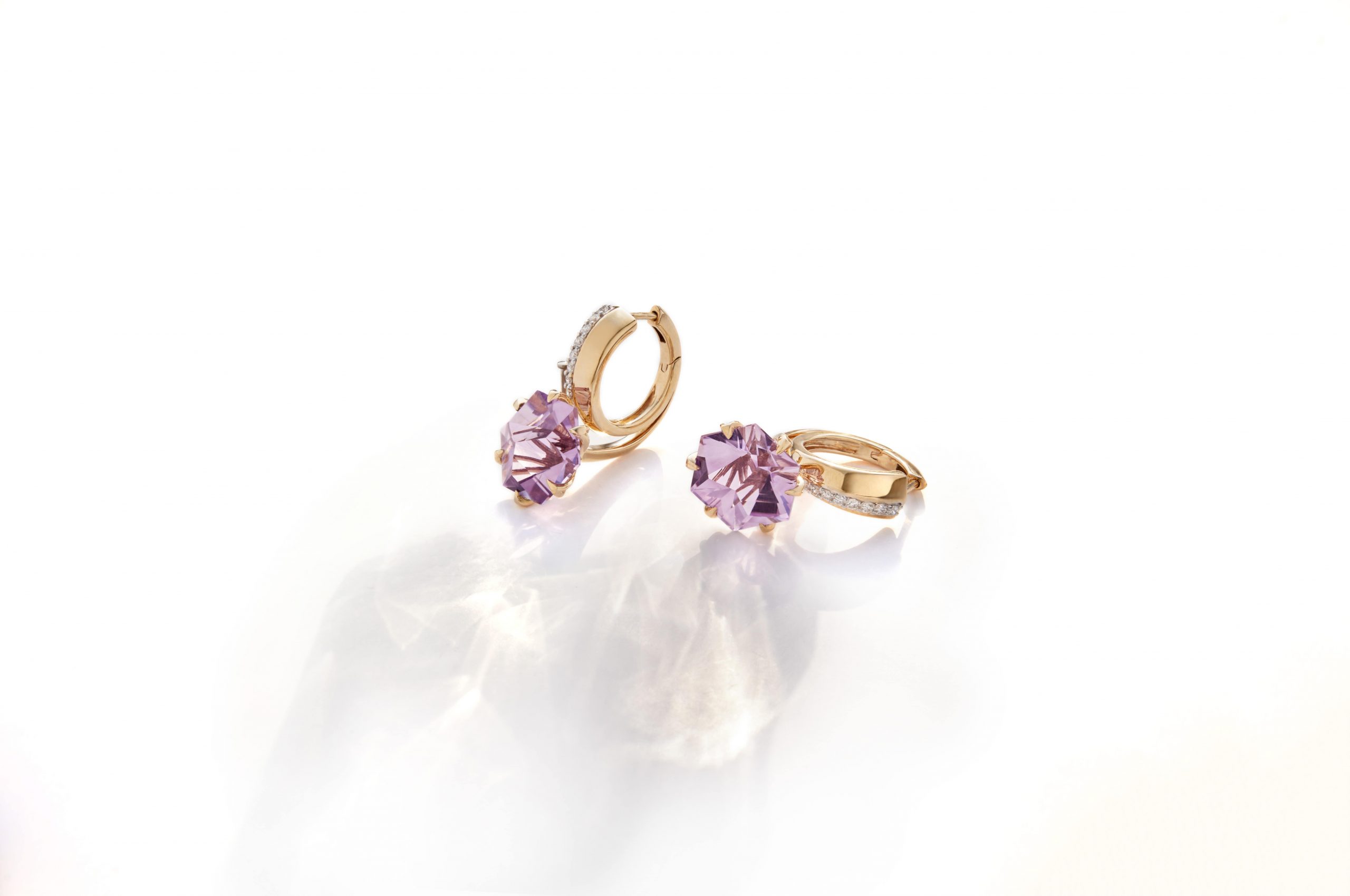 Two patents for the adaptations in the cuts of platonic solids form the highlight of this collection. Zoya’s atelier achieves the complex and challenging task of cutting the finest of amethysts with extreme precision into never-been-seen-before forms of icosahedron and dodecahedron, while ensuring optimal stone visibility and exciting light reflection from different perspectives. The setting of these special cuts is also complex and underscores Zoya’s unparalleled mastery in delivering exceptional design by drawing on the best of tradition and cutting-edge technology.